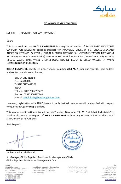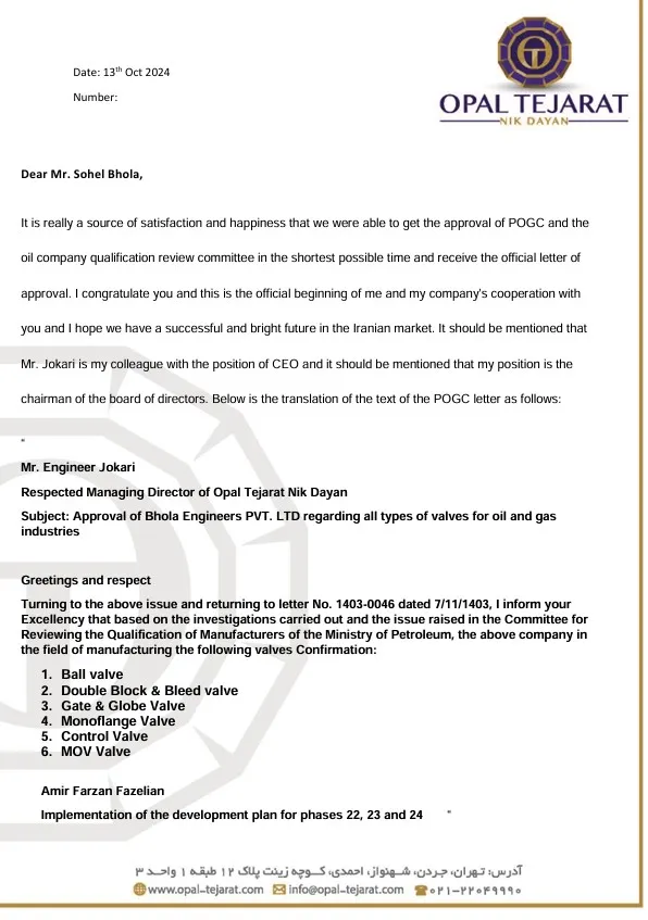 Home 9 Approvals Approvals 206674 SABIC Approval of AVL Opal healine English BEPL G KOC Approval Bhola ADNOC PQ Groups JSRS 2024 OQ OMAN تاییدیه وندور POGC